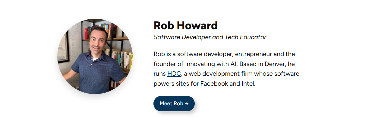 Proven Success: Rob Howard has helped hundreds of aspiring consultants build successful AI businesses. His course is based on strategies that have helped many individuals thrive in AI consulting.